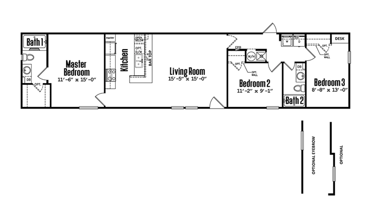 This New 16-Wide Home model, designed and built by Legacy Housing Corporation, has 3 bedrooms with 2 bath. With over 1068 square feet of interior space, this high-quality Singlewide Home is built to please, with abundant countertop and cabinet space, residential home construction features, and dozens of amenities & standard home features that other manufacturers leave out.